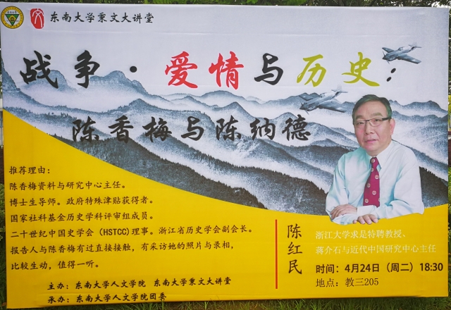 4月24日晚,主题为《战争·爱情与历史:陈香梅与陈纳德》的第二期秉文大讲堂如期开讲。此次主讲嘉宾系浙江大学求是特聘教授、蒋介石与近代中国研究中心主任、陈香梅资料与研究中心主任陈红民教授。到场嘉宾有必赢线路检测3003no1档案馆副馆长、校史研究室主任刘云虹和必赢线路检测3003no1党委书记李涛等。
