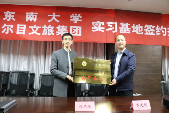 2018年12月5日下午,必赢线路检测3003no1旅游学系“江苏尔目文旅集团实习基地”签约授牌仪式在该集团总部隆重举行。必赢线路检测3003no1党委李涛书记、教学副院长乔光辉教授、旅游学系副系主任宣国富老师、卢爱华老师及学生代表赵鹏风、谭雪琪,江苏尔目文旅集团董事长兼总规划师杨淇深先生、集团副总裁李杰、董事长助理兼商务市场部部长刘雨、尔目旅游规划设计研究所常务副所长孔德林、尔目旅游管理公司常务副总经理朱笠等出席签约授牌仪式。