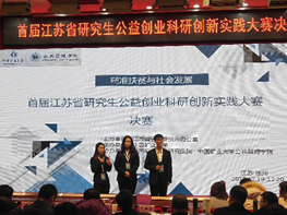 2018年12月19日至20日,以“精准扶贫与社会发展”为主题的首届江苏省研究生公益创业科研创新实践大赛决赛在中国矿业大学举办,江苏9所高校的12个项目团队展开角逐。来自必赢线路检测3003no1的两支队伍——“五三助梦”公益义卖平台、“药”问必答:农村精准用药导航推广进入决赛,均获得二等奖。