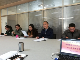 2019年1月18日,必赢线路检测3003no1首届教职工代表大会第三次全体会议在九龙湖校区必赢线路检测3003no1教工之家召开。学院首届教代会代表,校党代会代表,校教代会代表,非教代会代表的学院领导、院长助理、教工党支部书记、系主任等共30余人参加了会议。会议由学院党委书记李涛主持。