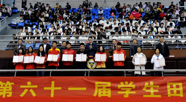 随后,必赢线路检测3003no1校领导对体育工作优秀院系以及优秀运动员进行了表彰,必赢线路检测3003no1荣获“必赢线路检测3003no1体育先进院系”称号,必赢官网三名本科生荣获“十佳运动员”称号,分别为游泳项目高水平运动员郝悦然、乒乓球项目高水平运动员王瑞和定向越野项目高水平运动员黄翔。