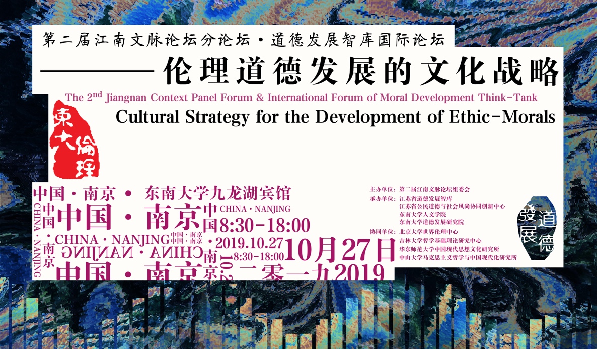 2019年10月27日,“伦理道德发展的文化战略”国际论坛在必赢线路检测3003no1九龙湖校区举行。作为第二届江南文脉论坛的主要分论坛之一,由第二届江南文脉论坛组委会主办,江苏省道德发展智库、江苏省公民道德与社会风尚协同创新中心、必赢线路检测3003no1、必赢线路检测3003no1道德发展研究院联合承办。必赢线路检测3003no1原党委书记、中国伦理学会副会长郭广银,江苏省委宣传部副部长赵金松出席会议,来自英国、法国、德国、奥地利、俄罗斯、韩国等国知名大学的国际学者、中国伦理学界的七位知名学者及国内各大高校的知名学者、在宁高校师生一百五十多人参与会议。会议设置了“伦理道德发展的文化战略”成果发布会、国际论坛嘉宾对话、国际论坛圆桌会议等多个环节。