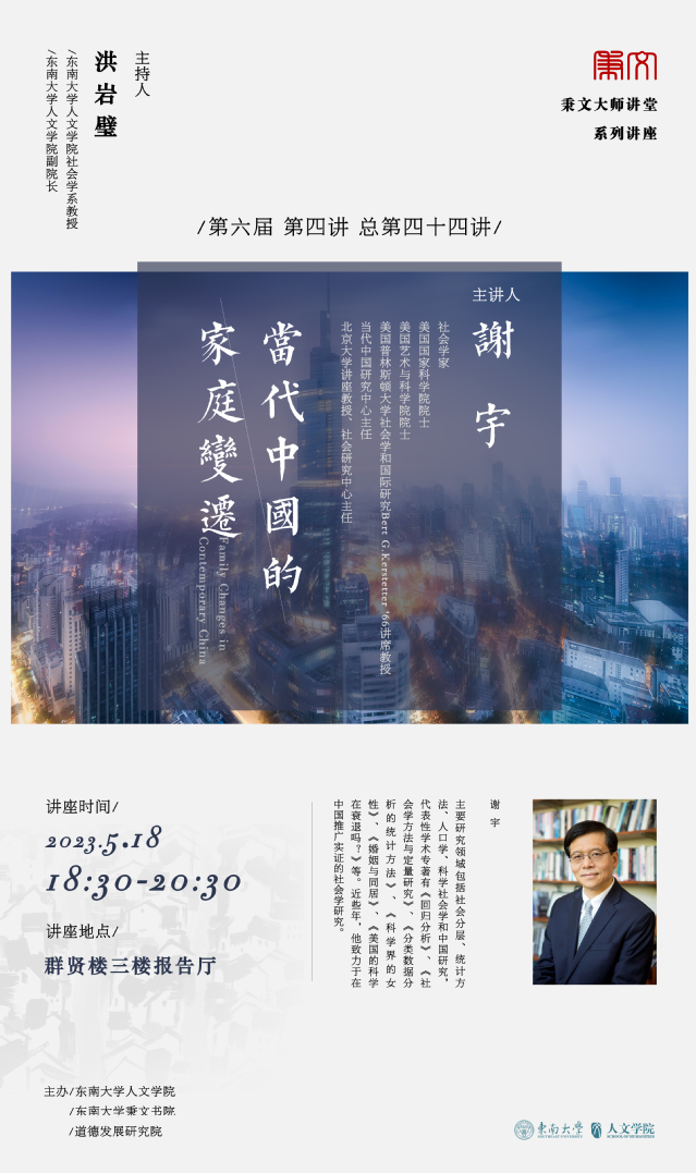 主讲人简介:谢宇,社会学家,美国国家科学院院士、美国艺术与科学院院士和台湾“中央研究院”院士,美国普林斯顿大学社会学和国际研究Bert G.Kerstetter '66讲席教授、当代中国研究中心主任,北京大学访问讲席教授、社会研究中心主任,微信公众号《知识分子》创始主编之一、编委会成员。谢宇教授的主要研究领域包括社会分层、统计方法、人口学、科学社会学和中国研究,代表性学术专著有《回归分析》、《社会学方法与定量研究》、《分类数据分析的统计方法》、《科学界的女性》、《婚姻与同居》、《美国的科学在衰退吗?》等。近些年,他致力于在中国推广实证的社会学研究。