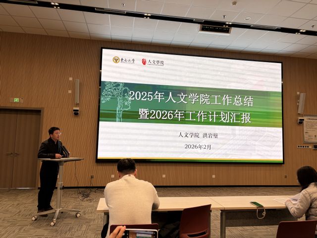 会上,院长洪岩璧,副院长夏保华、张晶晶、蒋艳艳,党委副书记兼副院长于晓明分别就分管领域,全面总结了学院2025年取得的突出成绩,并紧密围绕学校“名世方略”部署要求,系统谋划未来发展路径,明确学院2026年在科学研究、教育教学、人才队伍、国际合作等方面的具体举措和预期成效,确保学院“十五五”规划良好开局,为学校“双一流”建设贡献人文力量。